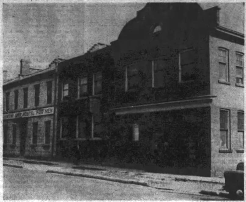 The Salvation Army Men’s Metropole as it looked in 1949 just before its demolition. The building on the far left - a former broom factory - was the original site and was expanded when the structure in the middle and on the right of the photo were added. These buildings were replaced by the current Salvation Army Booth Centre in 1950. Photo from the Spec, June 21, 1949.