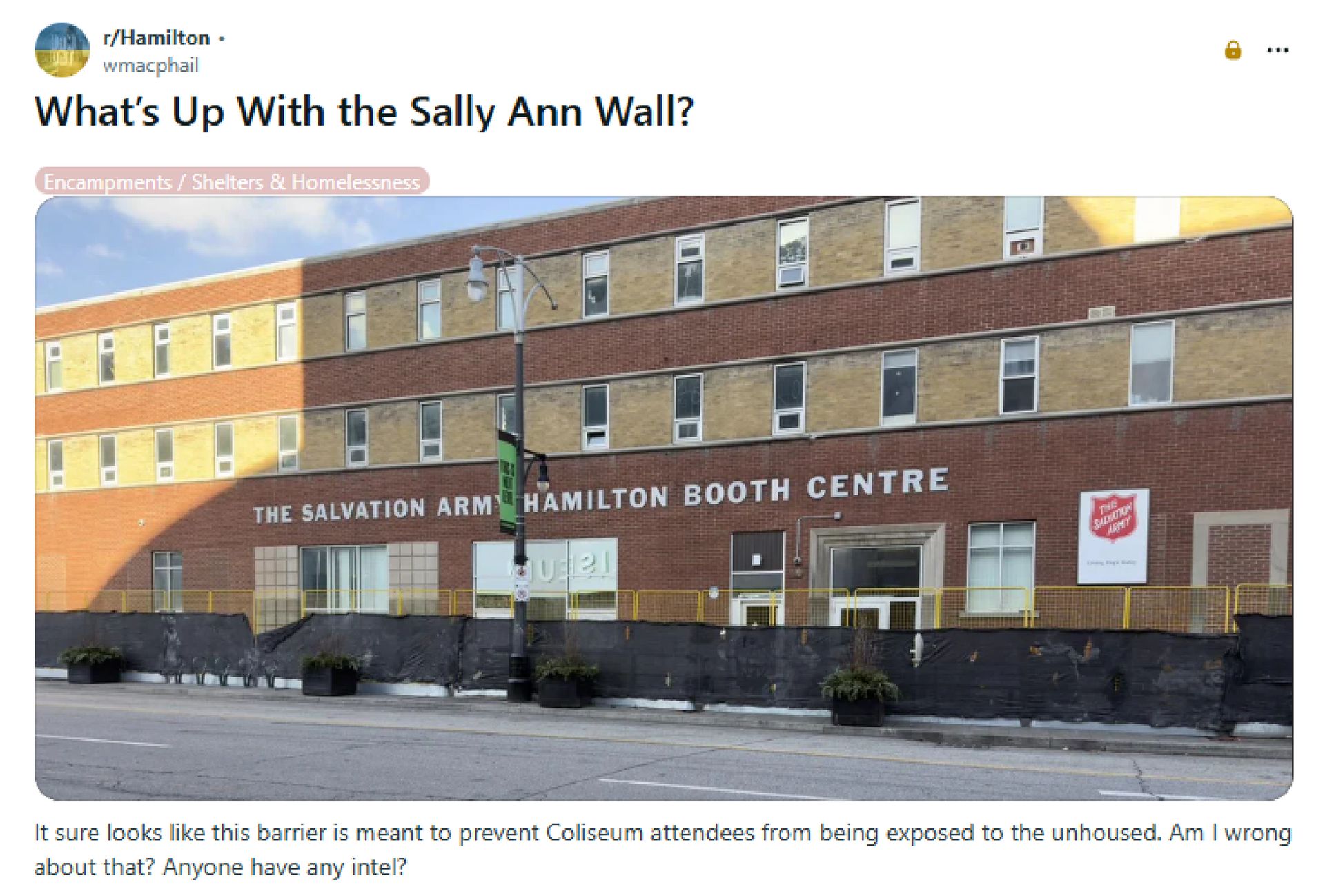 On Wednesday, November 19, the Strathcona-based writer and photographer Wayne MacPhail posted a photo to the r/Hamilton subreddit with the headline “What’s Up With the Sally Ann Wall?”