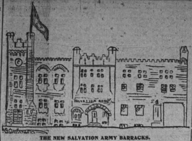 The church found refuge in a tiny hall on MacNab Street while they negotiated the purchase of a lot at the southwest corner of Hughson and Rebecca (where today’s New City Church is located). Within a year, the site had been secured, plans had been drawn up, and the Salvation Army was advertising their forthcoming digs with quaint illustrations in the Spec. The new location - eventually upgraded from a barracks to a “citadel” - opened to the public on Saturday, May 23, 1896, with the Spec reporting that those worshiping within would, for many years, “battle against the hosts of evil and give many a hard knock at Satan.”19